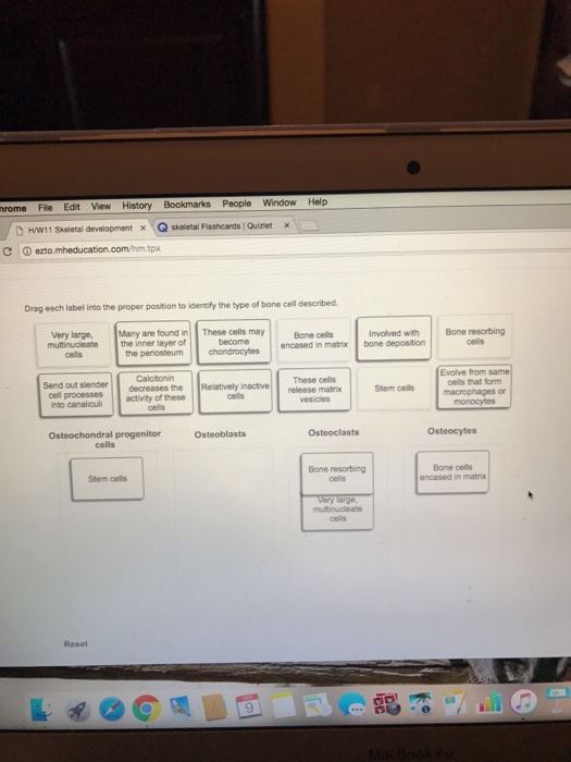 Which one of the following is minimized when the value of a firm is ... When autocomplete results are available use up and down arrows to review and enter to select. Touch device users, explore by touch or with swipe gestures. Famous Honolulu Typing School puzzle? - ForNoob Drag each label into the proper position to identify the type of bone cell described. Why did the USSR have more strategic ballistic missiles than the US during the latter stages of the Cold War in 1968-1991? my cousin wants to play strip poker with me she wants it badly should i do it? How do you draw a line structure for (CH3)CCO2CH(CH2CH3)2 ? Types of Bone Cells | Osteoclasts, Osteoblasts, & Osteocytes Types of Bone Cells: The bones are a core founding component of a living body that holds the structure of muscles and organs.The bones of the skeletal system are composed of two types of tissues, i.e., compact and spongy bone tissue.. The Compact bone tissue covers the outer part of the bone structure and provides toughness and strength to the structure of bone. drag each label into the proper position to identify the type of bone ... Let us first review how bone tissue is composed. Then, we will drag each label into the proper position. Bone tissue differentiates from other tissues because of the mineralized extracellular matrix. This tissue provides support and protection due to the rigidity and hardness of the matrix. The bone cells are: Osteocytes