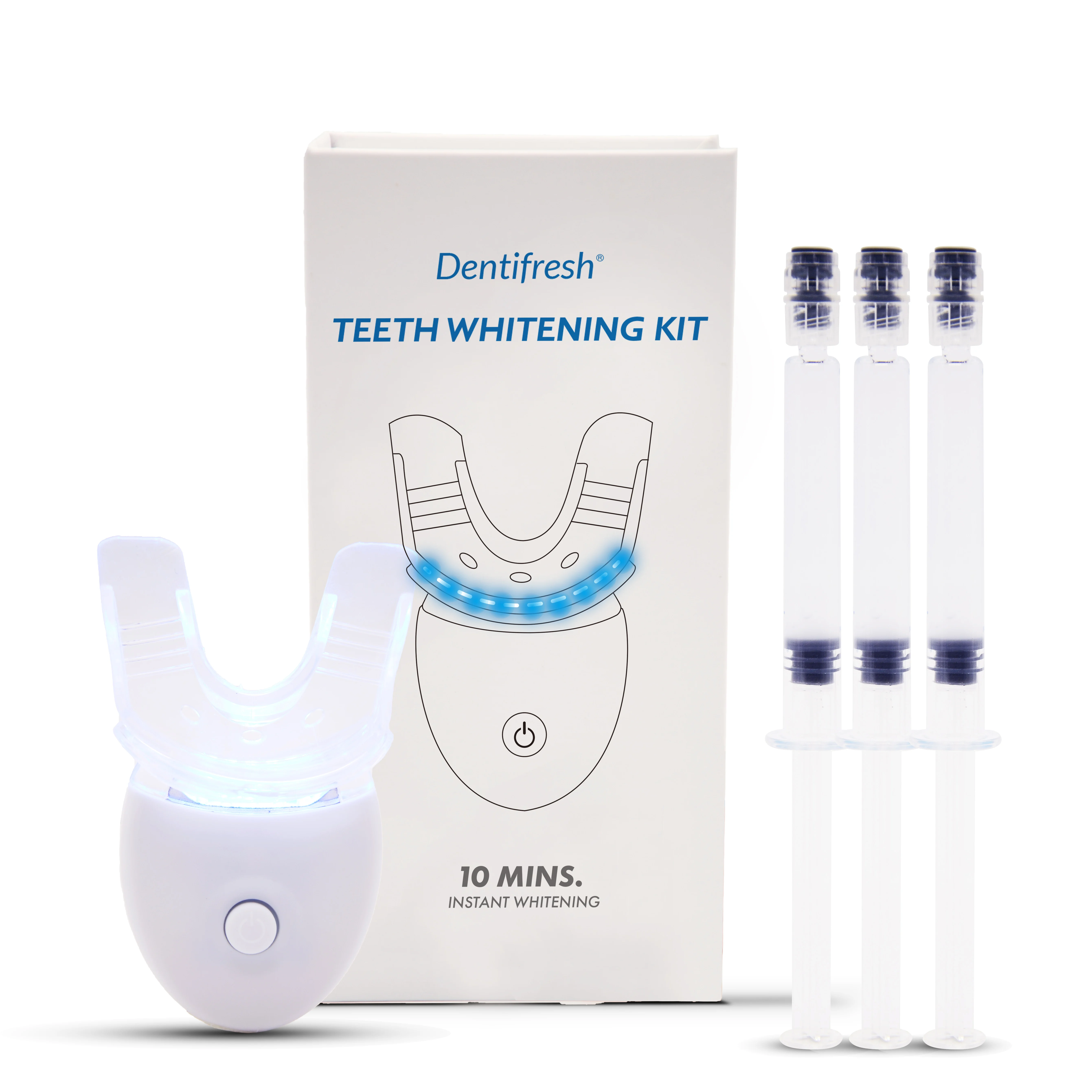 Private Label Teeth Whitening Kit with Light Fill the front surface of the mouth tray on both the top and bottom with 0.5 ml of gel. Insert the light with tray into your mouth and place firmly over your teeth. Press the power button to turn on the light and whiten your teeth for 30 minutes. When finished, rinse the mouth tray and your mouth. Store gel in a cool, dry place.