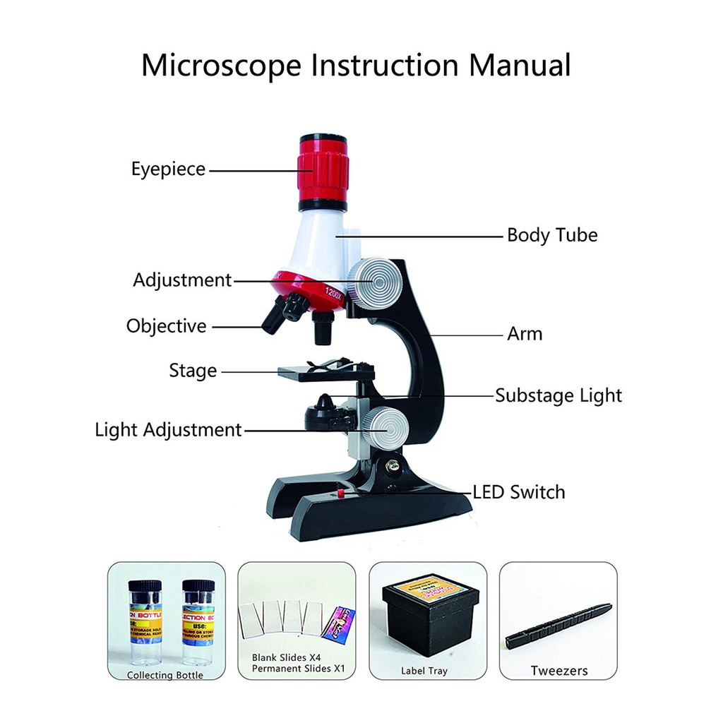 10X-20X Zoom Lensa Mata 1200X Pendidikan Anak Mahasiswa Pemula Mikroskop untuk Anak Laki-laki Anak Perempuan untuk Belajar Ilmu Pengetahuan Mengamati ...