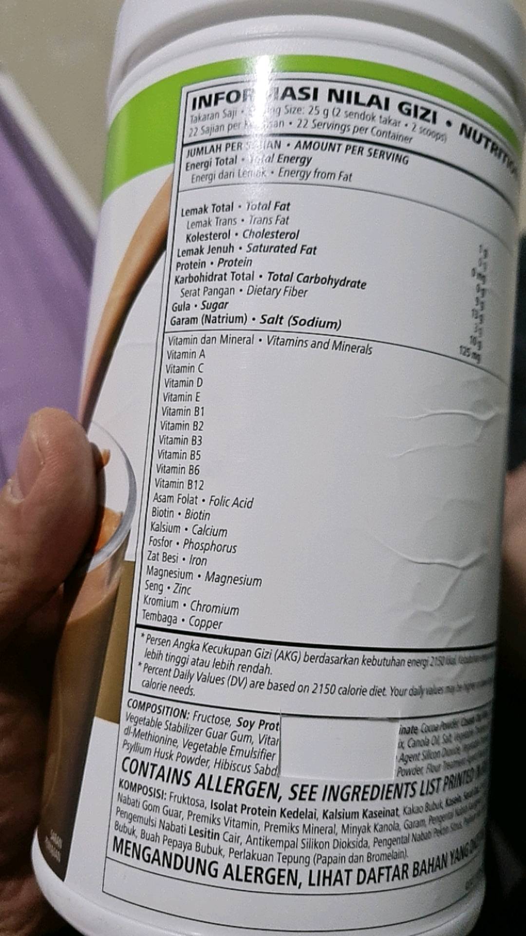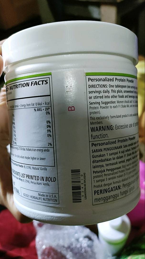 Herbalife protein powder label