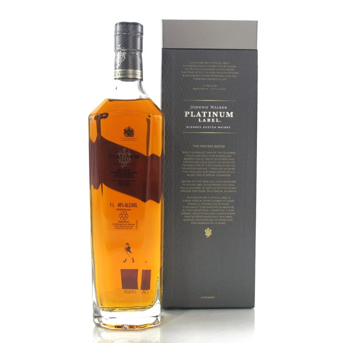 Johnnie Walker Platinum Label Whisky - Buy Online | Drizly 40% Product description Indulge all of your senses with a smooth glass of Johnnie Walker Platinum Label Blended Scotch Whisky, a blend of up to 18 different scotch whiskies each chosen for their remarkable depth of flavor and character. Our whisky blends big, classic Johnnie Walker flavors with intriguing contemporary notes.