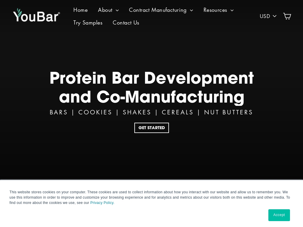 Protein Bars, Balls & Bites Contract Manufacturing YouBar has been developing and manufacturing protein bars for over a decade. We pride ourselves on creating and producing the energy bar brands of many of America's most well-known diet book authors, nutritionists, dietitians, entrepreneurs, event planners, gym owners and fitness celebrities. From custom recipe development, to full in-house packaging and brand design, YouBar offers complete contract manufacturing for protein bars and other types of nutritional products, such as: