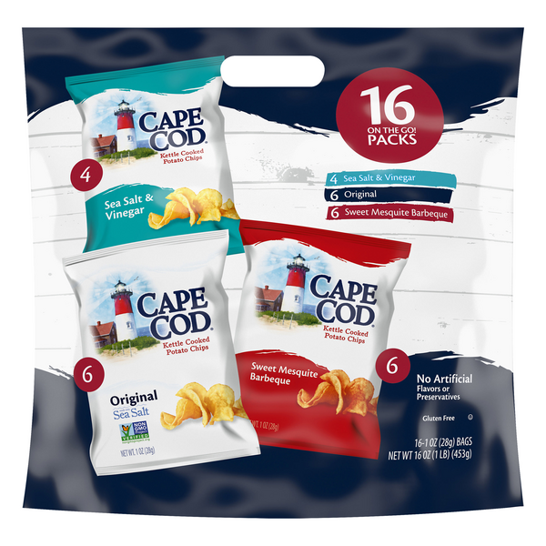 Cape Cod Potato Chips, Less Fat Sea Salt & Vinegar Kettle Chips - Target Cape Cod Potato Chips Sea Salt and Vinegar Kettle Chips - 7.5oz. $5.89. Cape Cod Potato Chips Less Fat Original Kettle Chips - 14oz. $3.19. Kettle Krinkle Cut Salt & Fresh Ground Pepper Kettle Chips - 8.5oz. $3.99. Lay's Salt & Vinegar Flavored Potato Chips - 7.75oz. $11.99. Frito-Lay Variety Pack Classic Mix - 18ct.