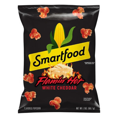 SMARTFOOD® FLAMIN' HOT® WHITE CHEDDAR FLAVORED POPCORN | Unleash Your ... Description Flamin' Hot ® White Cheddar is here. Other snacks can go now. Air-popped popcorn tossed in the flavors of white cheddar cheese and plenty of Flamin' Hot ® heat. The popcorn flavor you didn't even know you were waiting for. Nutrition Facts Ingredients Buy Now