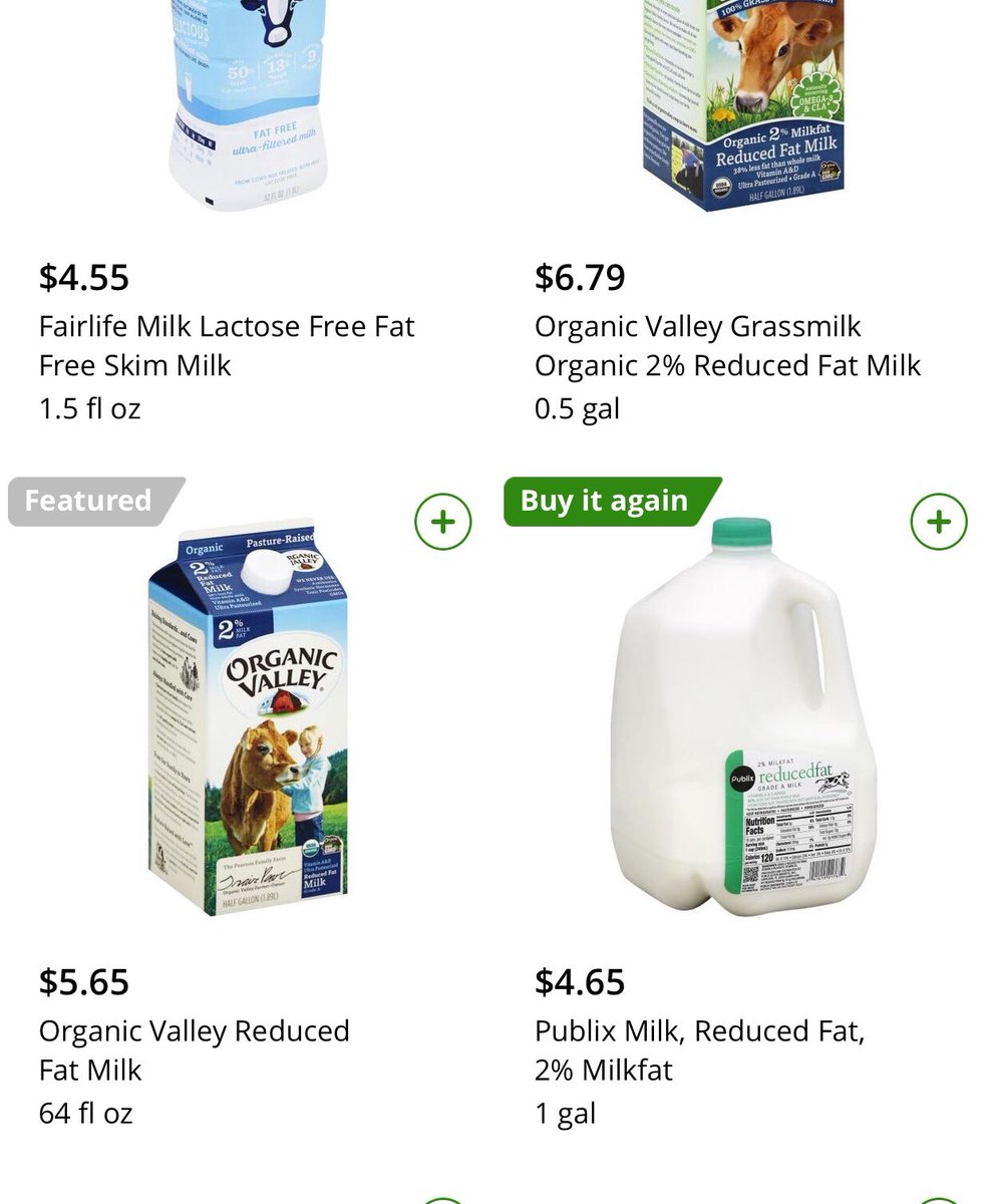 Milk at Publix - Instacart Order Milk products for delivery or pickup from Publix. Download the Instacart app now to get groceries, alcohol, home essentials, and more delivered to you within two hours via Instacart or available for pickup from Publix. ... fairlife 2% Reduced Fat Ultrafiltered Milk, Lactose Free. 11.5 fl oz. DairyPure Fat Free Milk. 0.5 gal. DairyPure Fat ...