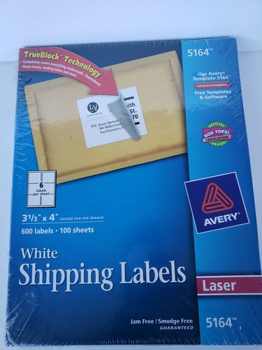 Avery 5164 White Shipping Labels, 3-1/3" x 4", 600 Labels - Walmart.com Avery 5164 Shipping Labels with TrueBlock Technology Avery Shipping Labels feature TrueBlock Technology that completely blocks out any writing underneath, giving boxes and envelopes a professional feel. This innovative technology also allows for boxes, tubes, envelopes and more to be re-used. Jam- and smudge-free guaranteed, the smooth feed ...