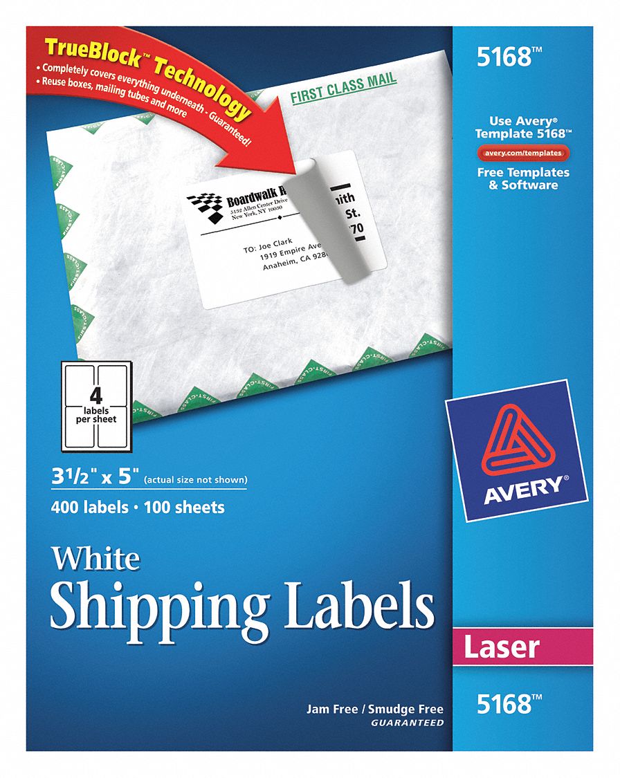 Shipping Labels w/ TrueBlock Technology, Laser Printers, 3.33 x 4 ... AVE5164 Create professional-looking labels quickly. Adhesive sticks to more tough surfaces, ensuring your label doesn't fall off your package. Labels with TrueBlock® Technology are guaranteed to completely cover everything underneath so you can re-use mailing tubes, boxes and more! Easy to customize with free templates and designs.