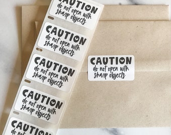 3 x 5" - "Do Not Open with Sharp Object" (Fluorescent Red) Labels Shop for 3 x 5" - "Do Not Open with Sharp Object" (Fluorescent Red) Labels and many other discounted office supplies. Free shipping on orders over $45. "Do Not Open with Sharp Object" Label - 3 x 5" - ULINE Pressure sensitive fluorescent labels stand out and get noticed.ULINE offers over 38,500 boxes, plastic poly bags, mailing tubes, warehouse supplies and bubble wrap for your storage, packaging, or shipping supplies. ... "Do Not Open with Sharp Object" Label - 3 x 5" Enlarge