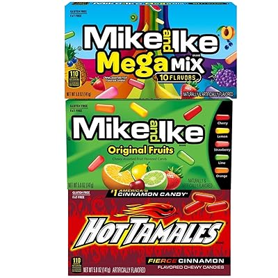 Set of 12 Mike and Ike Chewy Assorted Fruit Flavored Candies - Features Two Themes Including Original Fruit Flavors and Mega Mix Fruit Flavors - ...