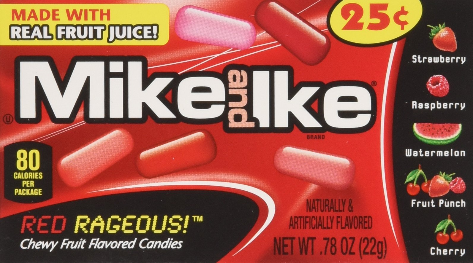 Mike and Ike Chewy Candy, Original, 5 Ounce (Pack of 12) MIKE AND IKE Original Fruits is fat free, gluten free and kosher! Don't forget to keep up-to-date with your favorite candy by following us on Facebook, ... Mike and Ike - Wikipedia Mike and Ike is a brand of fruit-flavored candies that were first introduced in 1940 by the company Just Born, Inc. The origin of the candy's name remains ...