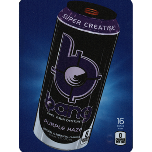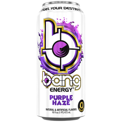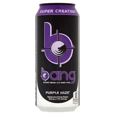 Bang Energy Drink — Purple Haze — 16oz Bang Energy Drink — Purple Haze — 16oz ... CAFFEINE. Contains 300mg of caffeine to keep you energized throughout every activity of the day. EAAS. Contains all 9 ... Bang Purple Haze Energy Drink, 16 fl oz - Mariano's Pickup. Unavailable ; Delivery. Unavailable ; Ship. Unavailable ; Savings. 2 For $5.00 ; Nutrition Facts. servings per container. Serving size1can (473 ml). Amount ... Calories in Purple Haze Super Creatine Energy Drink from Bang Sep 22, 2020 ... INGREDIENTS: Proprietary Blend: Glycerin, Caffeine, L-Leucine, L-Isoleucine, L-Valine, Super Creatine (Creatyl-L-Leucine), CiQ10 (Coenzyme ...