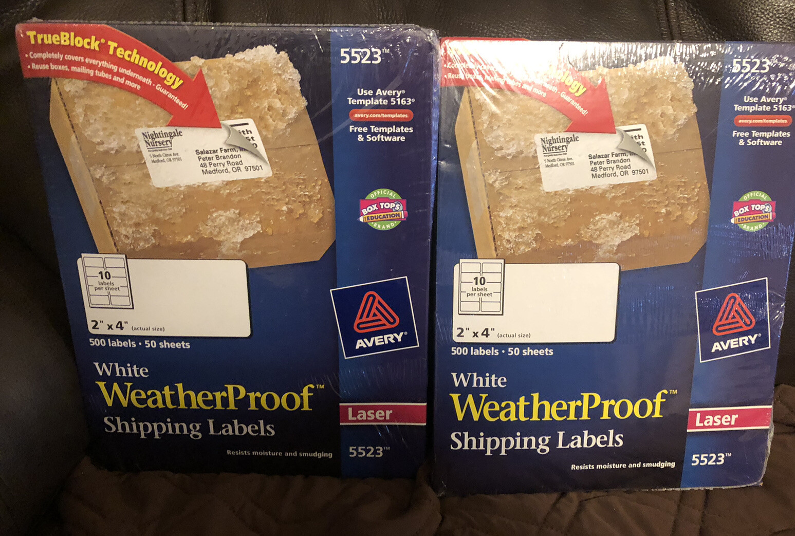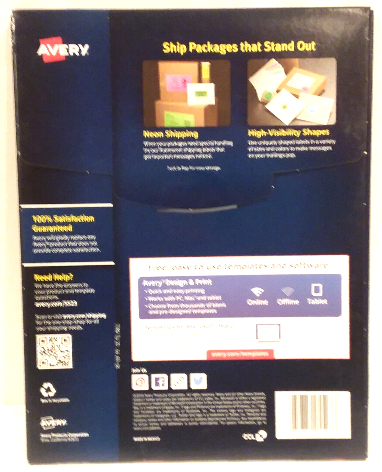 Avery 5523. Avery® 5523 TrueBlock 2" x 4" Waterproof White Shipping Labels... Avery 5523 Specs Quantity 500 / Box Shipping Weight 1.4 lb. Length 4 Inches Width 2 Inches Adhesive Type Permanent Color White Features TrueBlock Printer Compatibility Laser Shape Rectangle Style Printable Type Mailing Labels Avery 5523 Details Standardize your letters and packages with the 5523 TrueBlock 2" x 4" waterproof white shipping labels. Avery Waterproof Labels with Ultrahold Permanent Adhesive, 2 ...... Make sure you're using the most secure labels with Avery 05523 mailing labels with Ultrahold permanent adhesive. Avery Ultrahold adhesive sticks and stays better than other basic labels on a variety of surfaces including envelopes, cardboard, paper, plastic, glass, tin and metal. 0 - avery.com Discount applies only to on blank labels by the sheet and WePrint custom printed products sold only on . Offer is only valid on orders shipping within the United States and Puerto Rico. Discount will not be applied to any previous transactions and cannot be combined with any other promotional offer. Avery 5523 Weatherproof Shipping Labels, 2 x 4, White AVE5523 Avery 5523 WeatherProof Shipping Labels Provides strong protection for harsh environments and weather conditions. Durable polyester with strong adhesive for a variety of surfaces. Label Size - text: 2 x 4; Label Color (s): White. Avery Commercial WeatherProof Shipping Labels, White, 2" x 4", 10 Labels per Sheet, 50 Sheets per Pack, 500 Labels