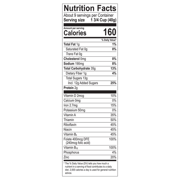 Honeycombs cereal nutrition facts